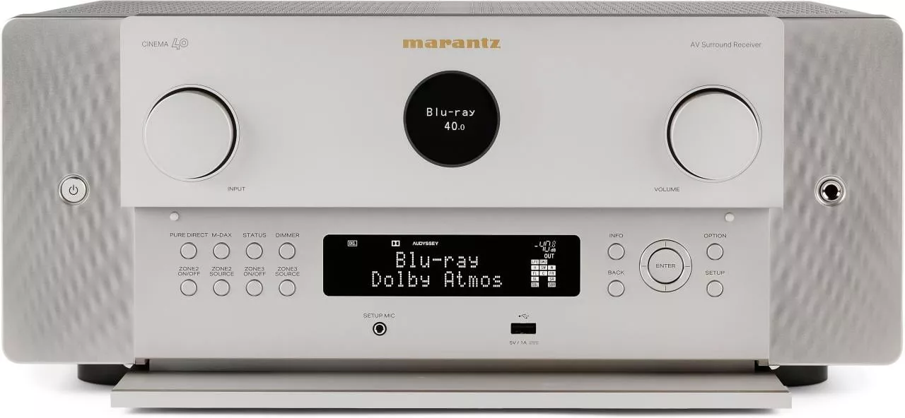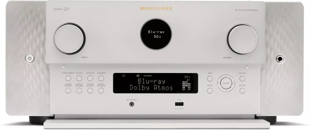 CINEMA 40 - это высококачественный AV-ресивер, предназначенный для использования в домашних развлечениях и домашнем кинотеатре. Он обеспечивает мощность до 125 Вт на канал, легендарную производительность Marantz, семь входов HDMI с поддержкой 8K UHD, потоковые сервисы HEOS, коррекцию помещения Audyssey MultEQ XT32, технологии Dolby Atmos и DTS: X, Auro 3D, а также обширные интерфейсы ввода и вывода, включая выходы предусилителя на каждом канале, а также четыре независимых разъема для выхода на сабвуфер.