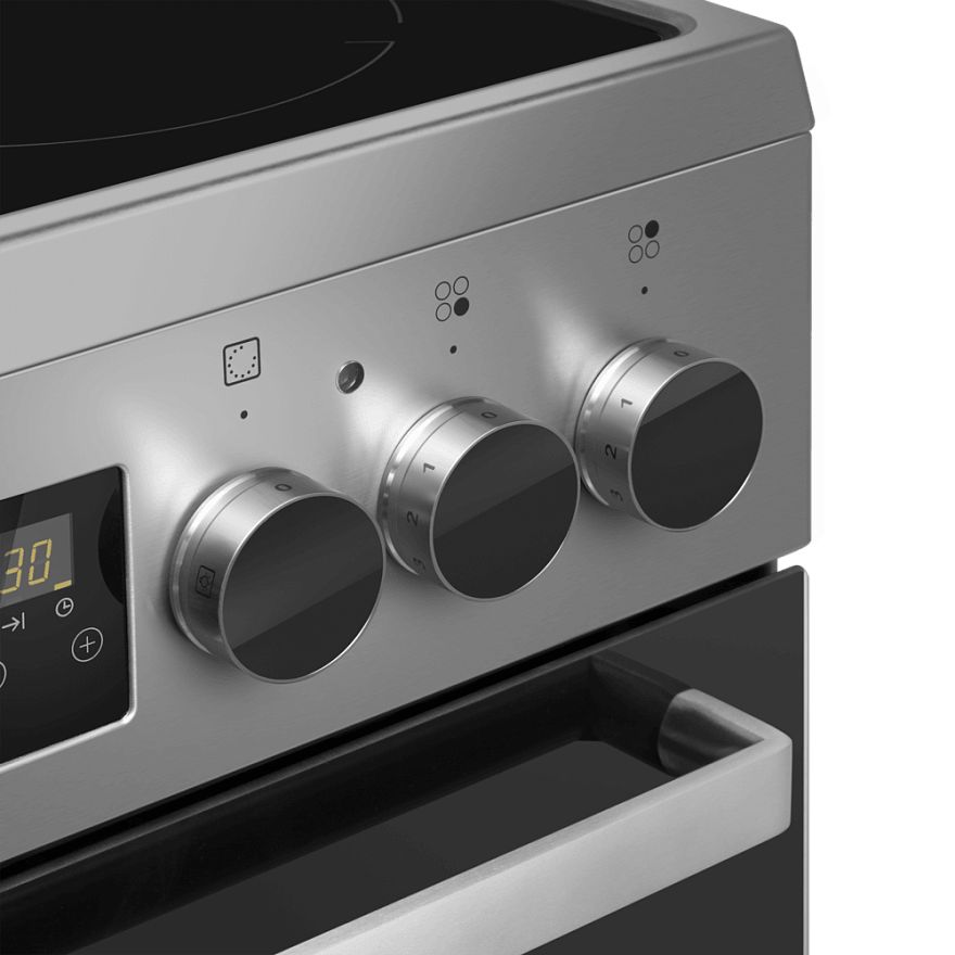 Поворотные переключатели и интуитивно понятная сенсорная панель управления позволяют легко управлять прибором. Всего несколькими касаниями пальца вы можете регулировать настройки приготовления, устанавливать таймеры и получать доступ к другим функциям. Цифровой дисплей обеспечивает ясную видимость выбранных настроек.