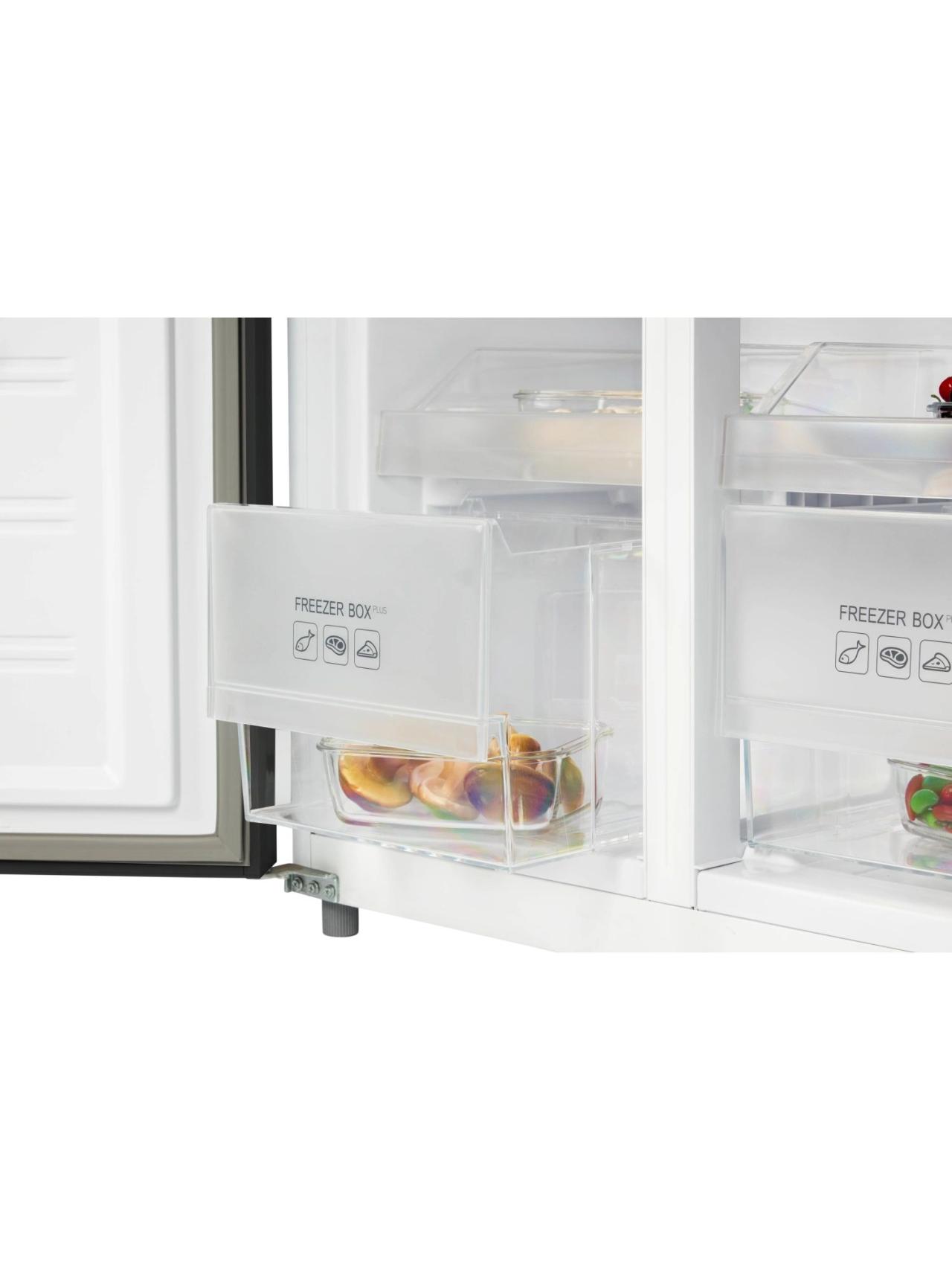 4-х дверный холодильник имеет единое пространство верхних полок холодильной камеры, чтобы удобно было размещать габаритные кастрюли и контейнеры. Прочные полки из закаленного стекла можно регулировать по высоте, а ящики в холодильной камере предназначены для хранения овощей и фруктов и оснащены влажной зоной свежести и сухой.