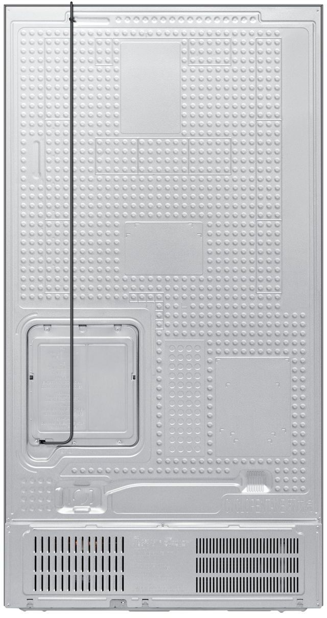 Управление осуществляется как с внутренней электронной панели, так и дистанционно через приложение SmartThings с поддержкой Wi-Fi и Bluetooth. В холодильной камере — 4 полки из закаленного стекла (с фиксаторами против выдвижения), 5 дверных карманов, полка для бутылок и 2 ящика для овощей и фруктов. В морозильной камере — 4 полки, 5 дверных карманов и 2 прозрачных пластиковых ящика. Обе камеры оснащены светодиодным освещением и индикацией температуры.
