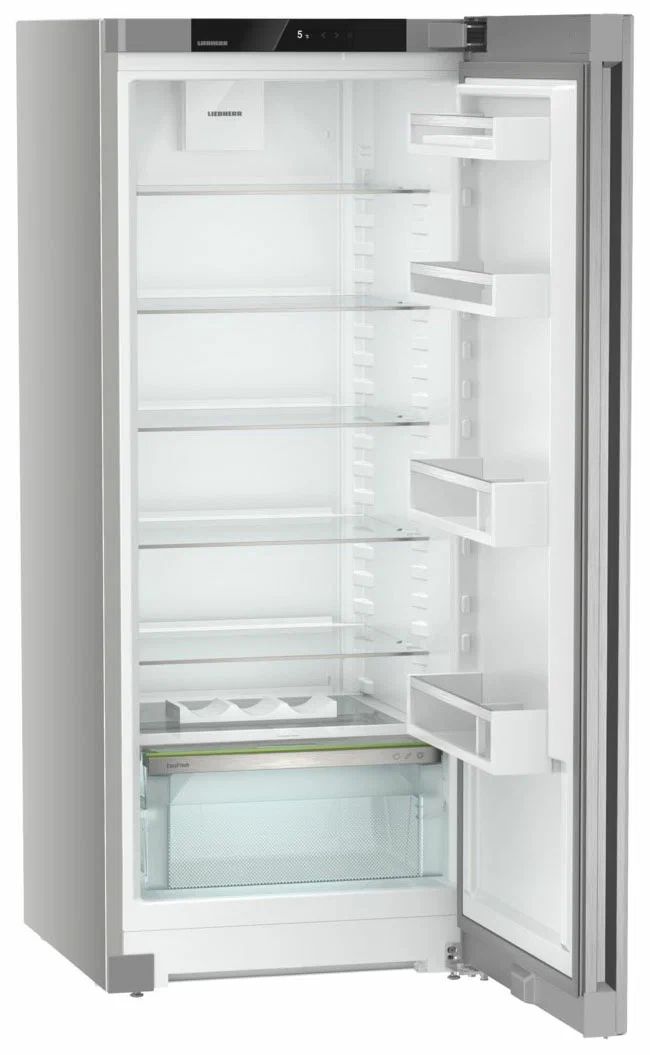 Однокамерный холодильник Liebherr Rsfd 4600-22 001 ориентирован на тех, кто ценит аккуратный минимализм и удобство повседневного хранения. Поверхность SteelFinish поддерживает строгий, «холодный» стиль кухни и легко очищается, а лаконичная утопленная ручка визуально «облегчает» фасад и делает открывание комфортным. Концепция InteriorFit помогает аккуратно встроить прибор в нишу глубиной 60 см — выступает только дверь.