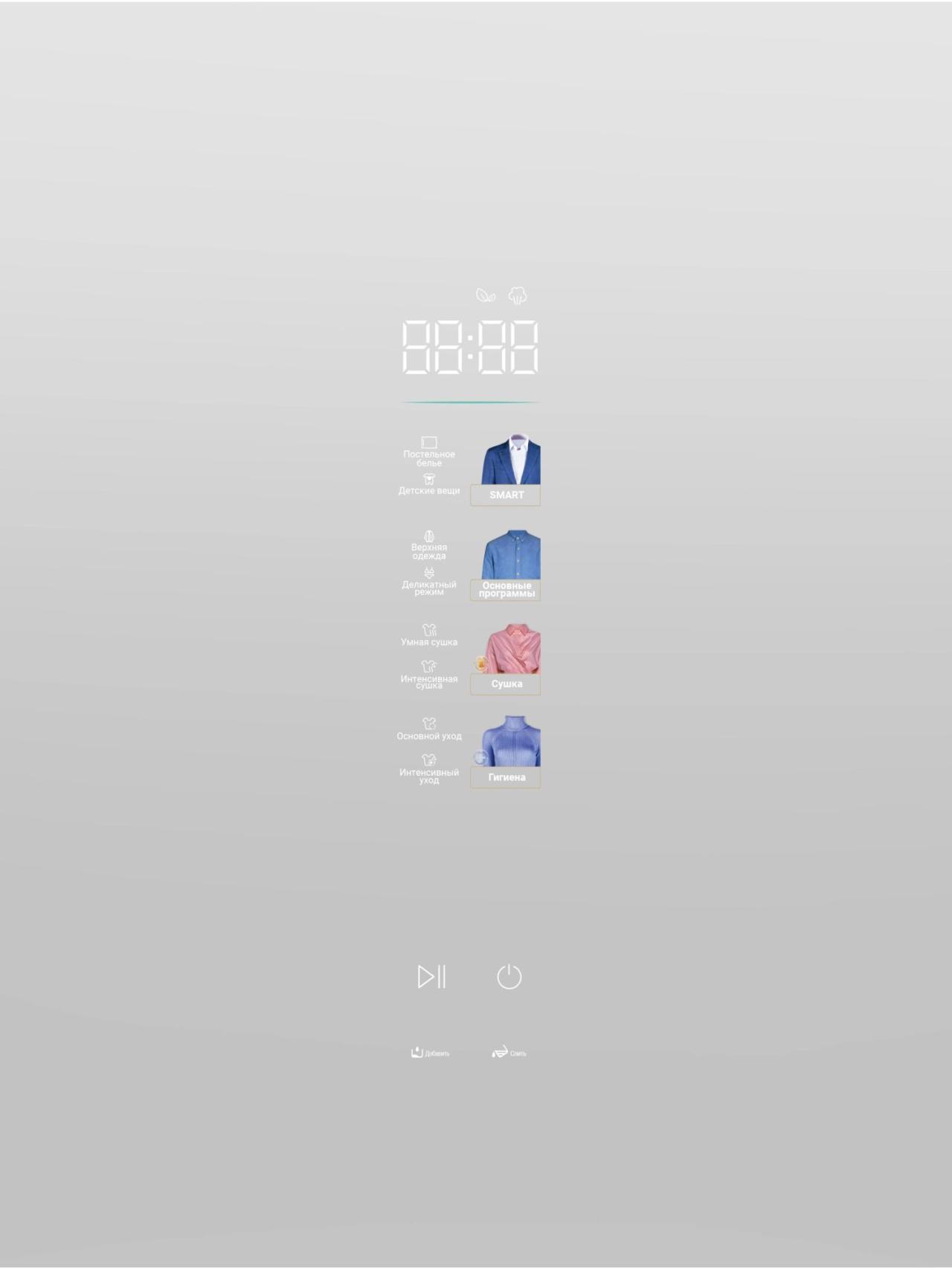 В повседневной эксплуатации HIBERG SD 5GW удобен и понятен: сенсорное управление и цветной дисплей обеспечивают быстрый доступ к нужным режимам, а низкий уровень шума — до 63 дБ позволяет запускать уход даже в вечернее время. Для дополнительного комфорта предусмотрена LED-подсветка, чтобы легко загружать и доставать вещи.